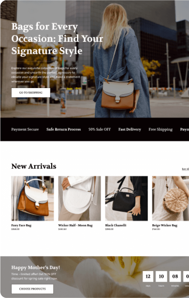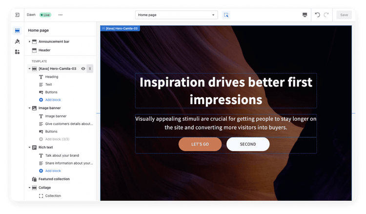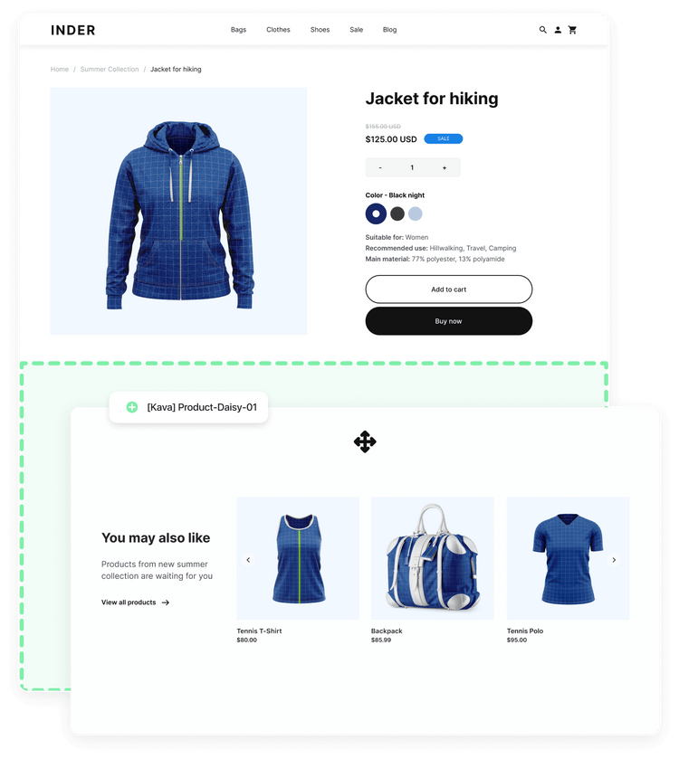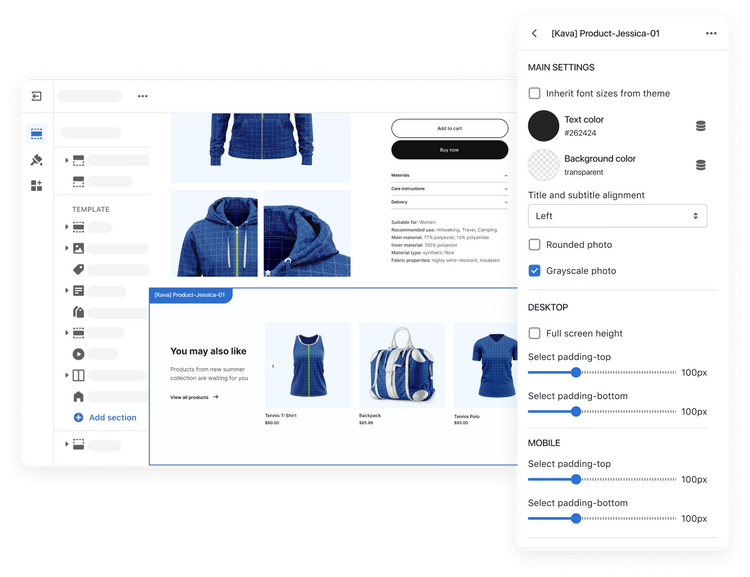 Create unique shopping experiences for your buyers, and bring your brand’s vision to life. You can drag and drop sections, and choose colors, imagery, and fonts with ease. No design skills or coding required.